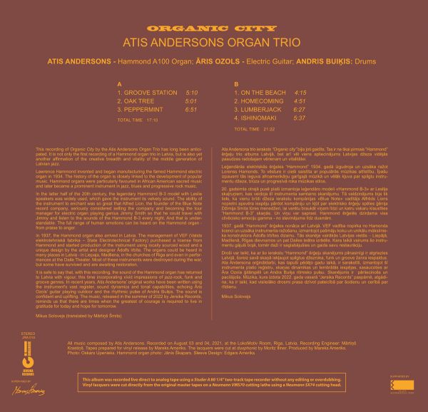 Albums „ORGANIC CITY“ ir pirmais Latvijas džeza ieraksts, ko vada Hammond ērģelnieks. Atis Andersons nopietni sāka interesēties par Hammond ērģeļu spēli 2010. gadu beigās, un tagad mēs varam dzirdēt viņa prasmi, aizrautību un mūziku viņa debijas albumā kopā ar ģitāristu Āri Ozolu un bundzinieku Andri Buiķi.