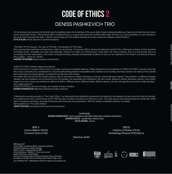 Saksofonists Deniss Paškevičs kopā ar Arti Orubu (bungas, perkusijas) un Edvīnu Ozolu (kontrabass) ir ierakstījis jaunu albumu ar nosaukumu „Code of Ethics II”, kas izdots gan digitālā formātā, gan vinila platē. Albums tiks prezentēts koncertu sērijā, kuras ietvaros notiks uzstāšanās Baltijas valstīs, Eiropā, Skandināvijā un Āzijā.